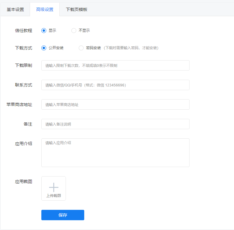 4. 联系方式:可以留下联系方式,让用户在下载页可以看到联系方式